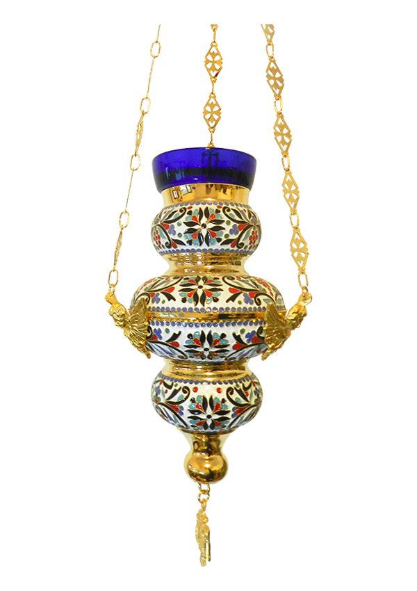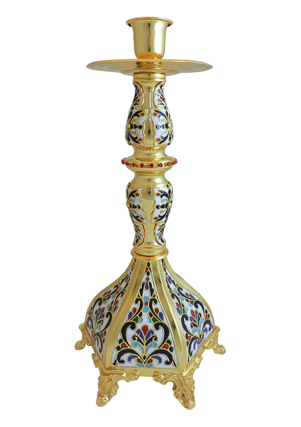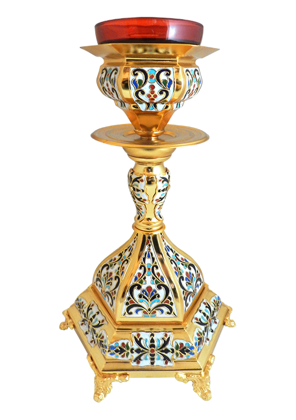 Sfeșnic Sfânta Masă, 1 lumânare, cu pietre roșii și email.